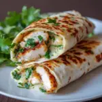 - Place the wrap in the hot pan. Cook 1–2 minutes per side until the tortilla is golden and the cheese melts.