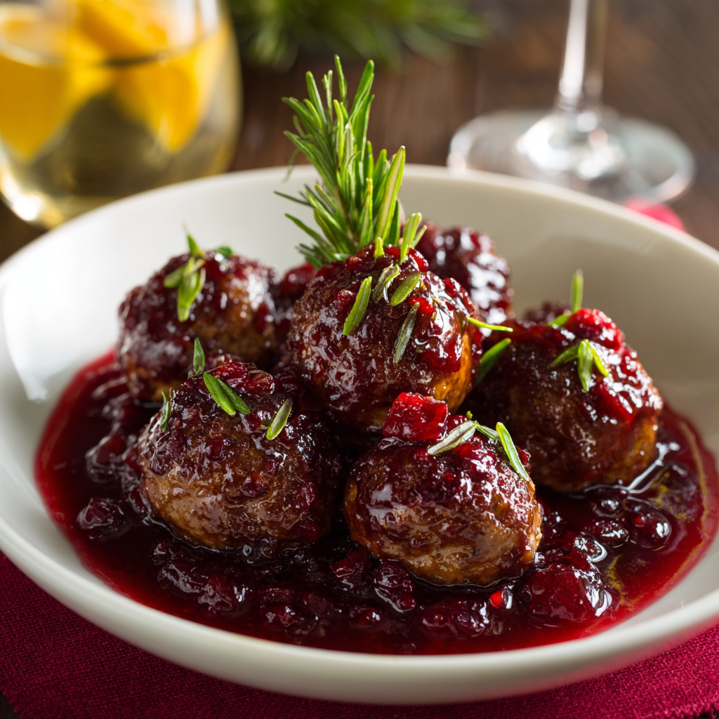 A festive appetizer combining savory meatballs with a sweet and tangy cranberry sauce, perfect for holiday gatherings.