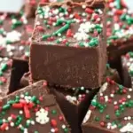Once your Christmas fudge is set, it’s ready to serve! You can present it on a festive platter or in small gift boxes. The colorful sprinkles make it an attractive treat for holiday gatherings. Enjoy it as a sweet snack or dessert after dinner. It pairs nicely with a warm cup of cocoa or coffee!