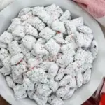 You can serve Christmas Puppy Chow in a festive bowl or package it in holiday-themed treat bags. It’s a wonderful snack for movie nights, holiday gatherings, or even as a topping for ice cream!