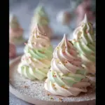 Christmas Tree Meringues are a festive way to celebrate the season. They’re fun to make, and decorating them with sprinkles brings out your creativity. These meringues are also naturally gluten-free, making them great for those with dietary restrictions. Moreover, they serve as a charming decoration for your holiday table or can be gifted in cute packaging to friends and family.