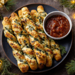 These festive breadsticks are best served warm alongside a festive platter. You can pair them with some extra spinach dip for dipping or even with a side of marinara sauce for those who want something with a kick!