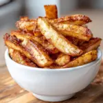 Delightful crispy apple fries made in the air fryer for a sweet, crunchy snack or dessert option.