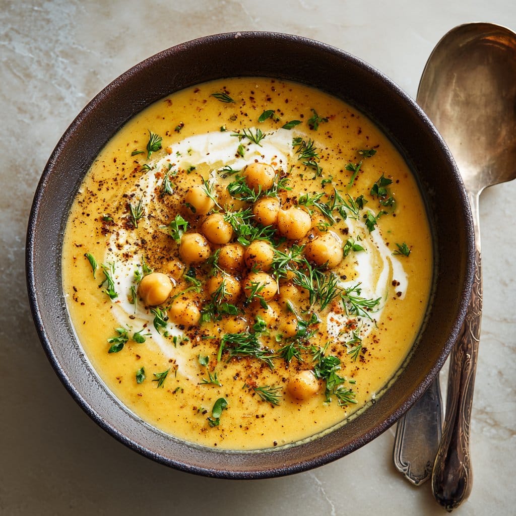 Garlic Chickpea Soup is warm, simple, and full of flavor. It uses cans of chickpeas, garlic, onion, broth, and spinach. You can make it fast and eat it any night.