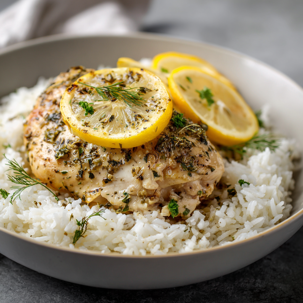Slow Cooker Lemon Herb Chicken with Fluffy Rice